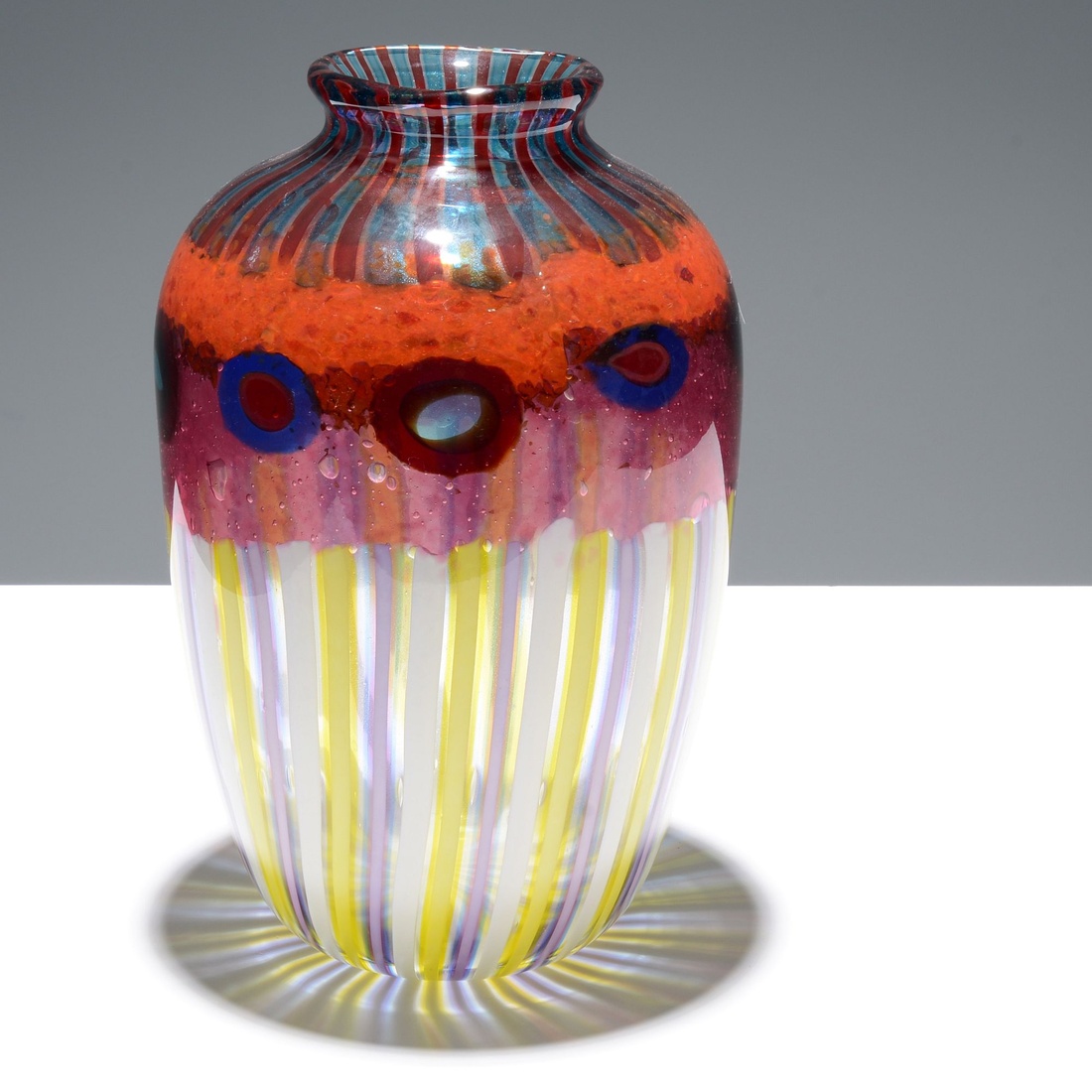 Anzolo Fuga PAVONE / MURRINE INCATENATE Series Vase, 12.75″H, Murano