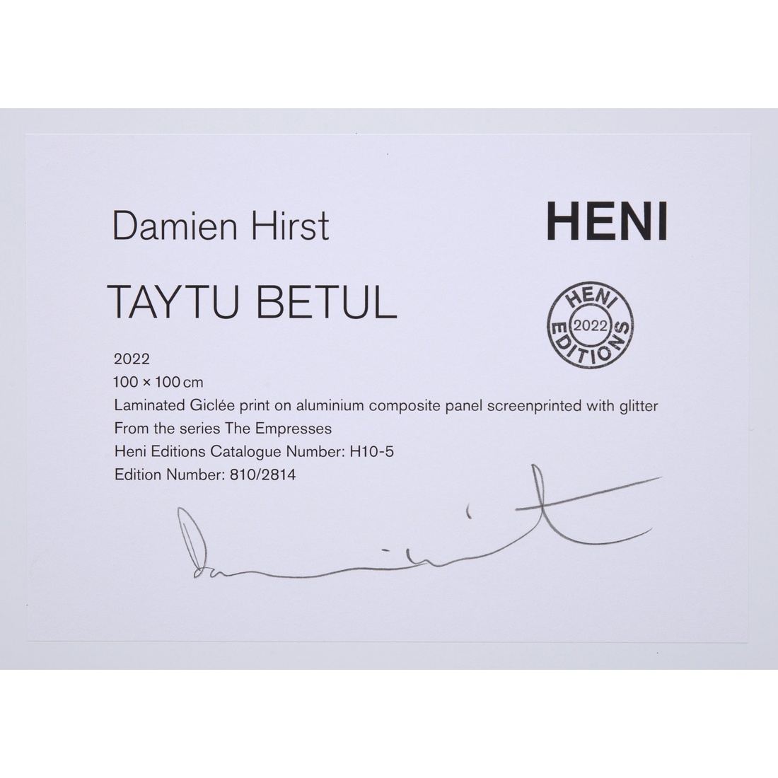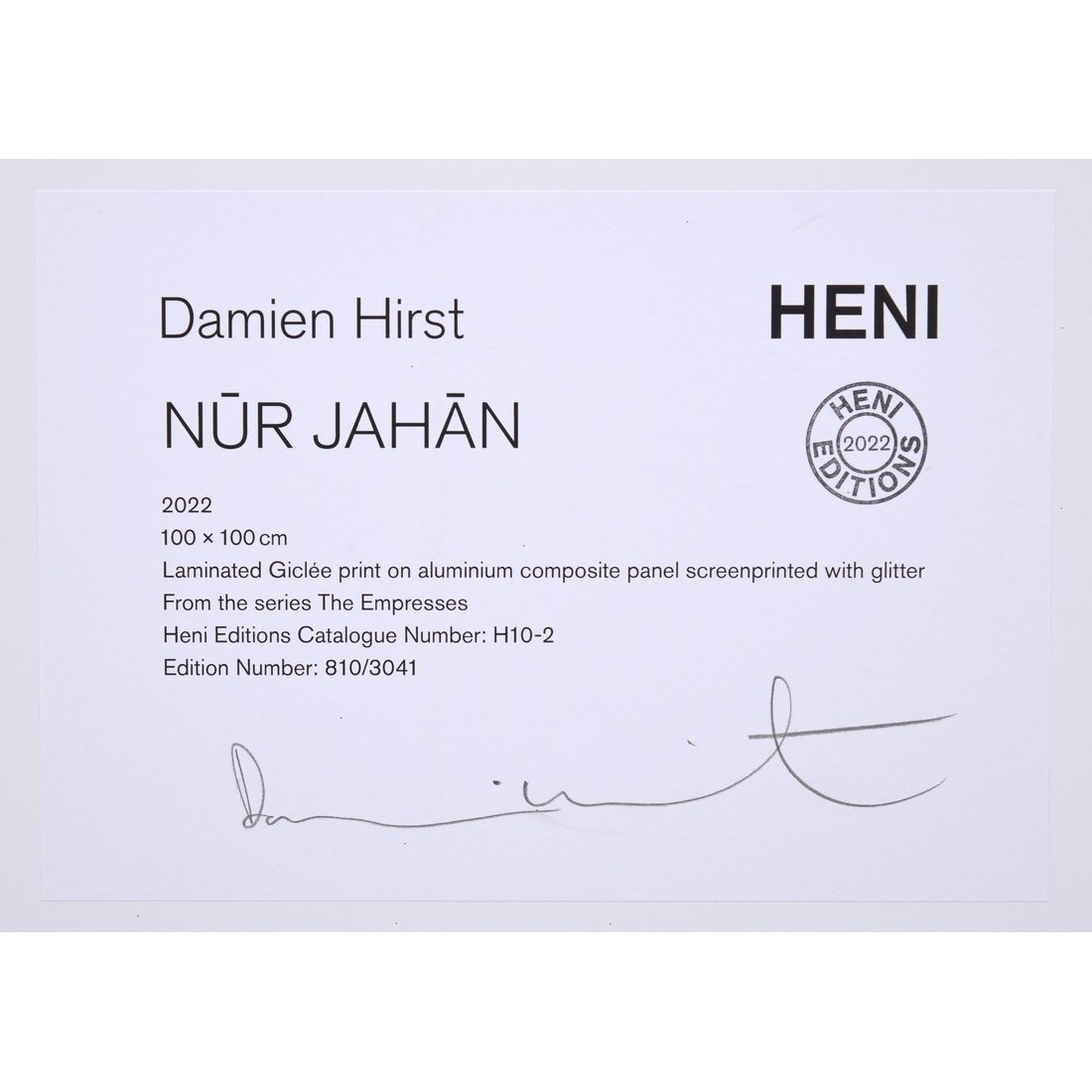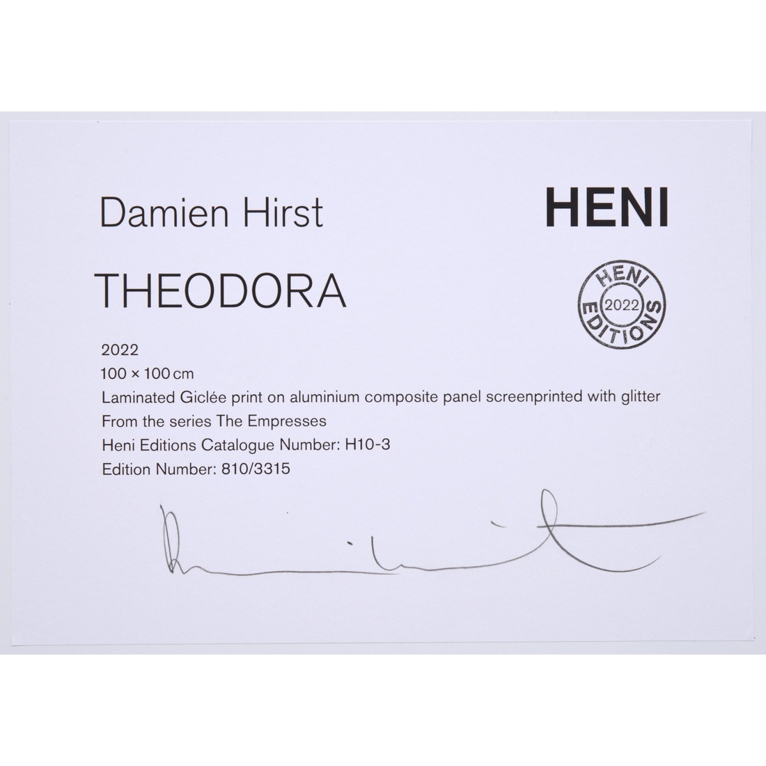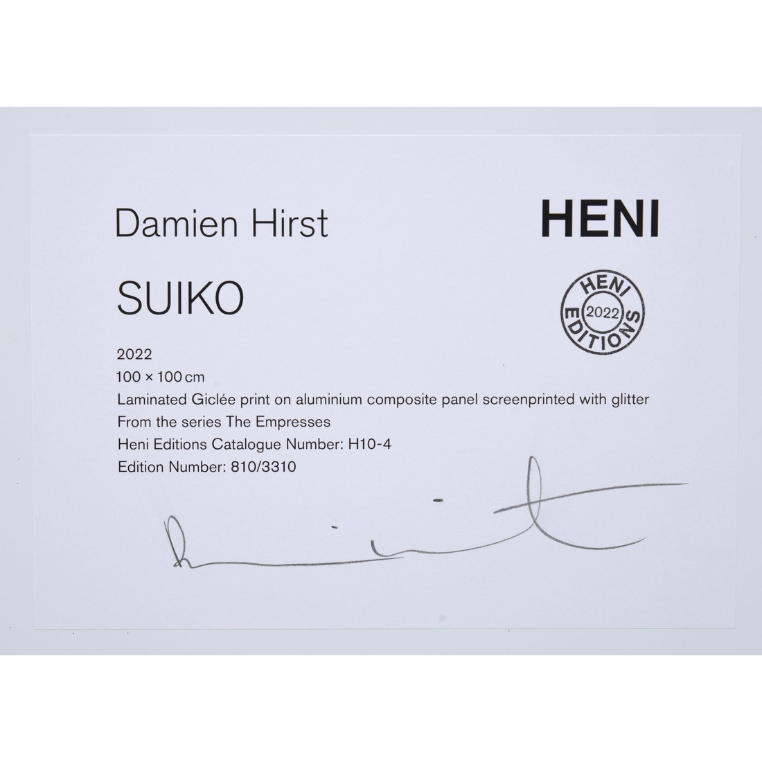 | Marking(s); notes | signed on labels; ed. 810/3041 (all); 2022 |