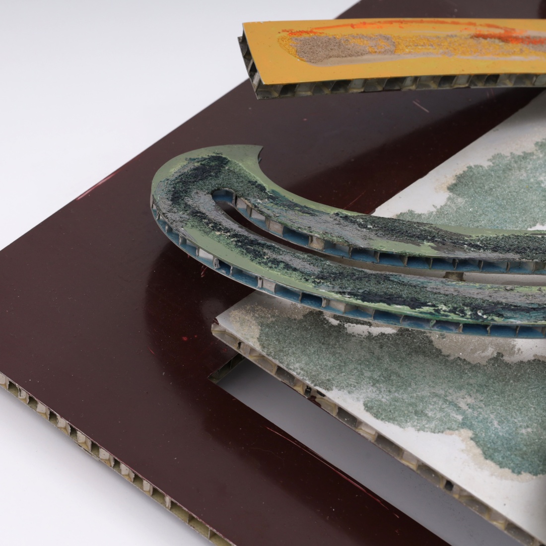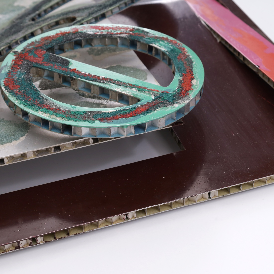 | Materials | lacquer, glitter, oil paint on aluminum |