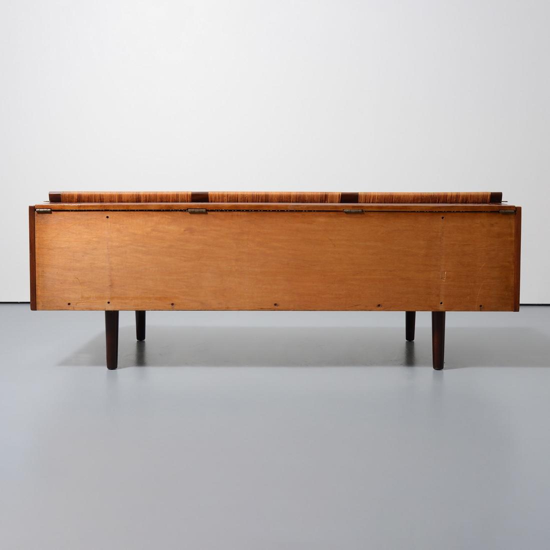 The headboard of the daybed opens to reveal pillow and linen storage. Reference: Designed For Life – Scandinavian Modern Furnishings 1930-1970, Michael Ellison and Leslie Pina, pg. 181.