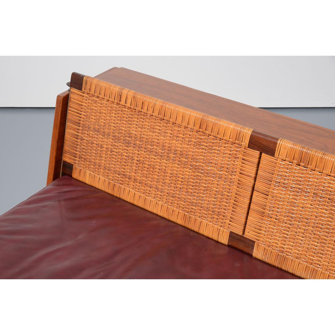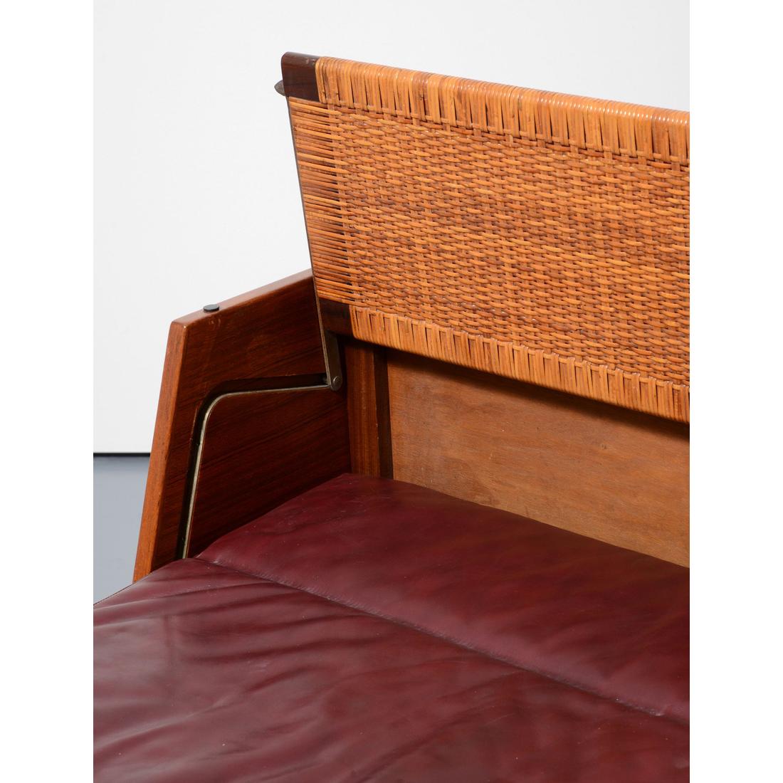 teak, caned panels, leather