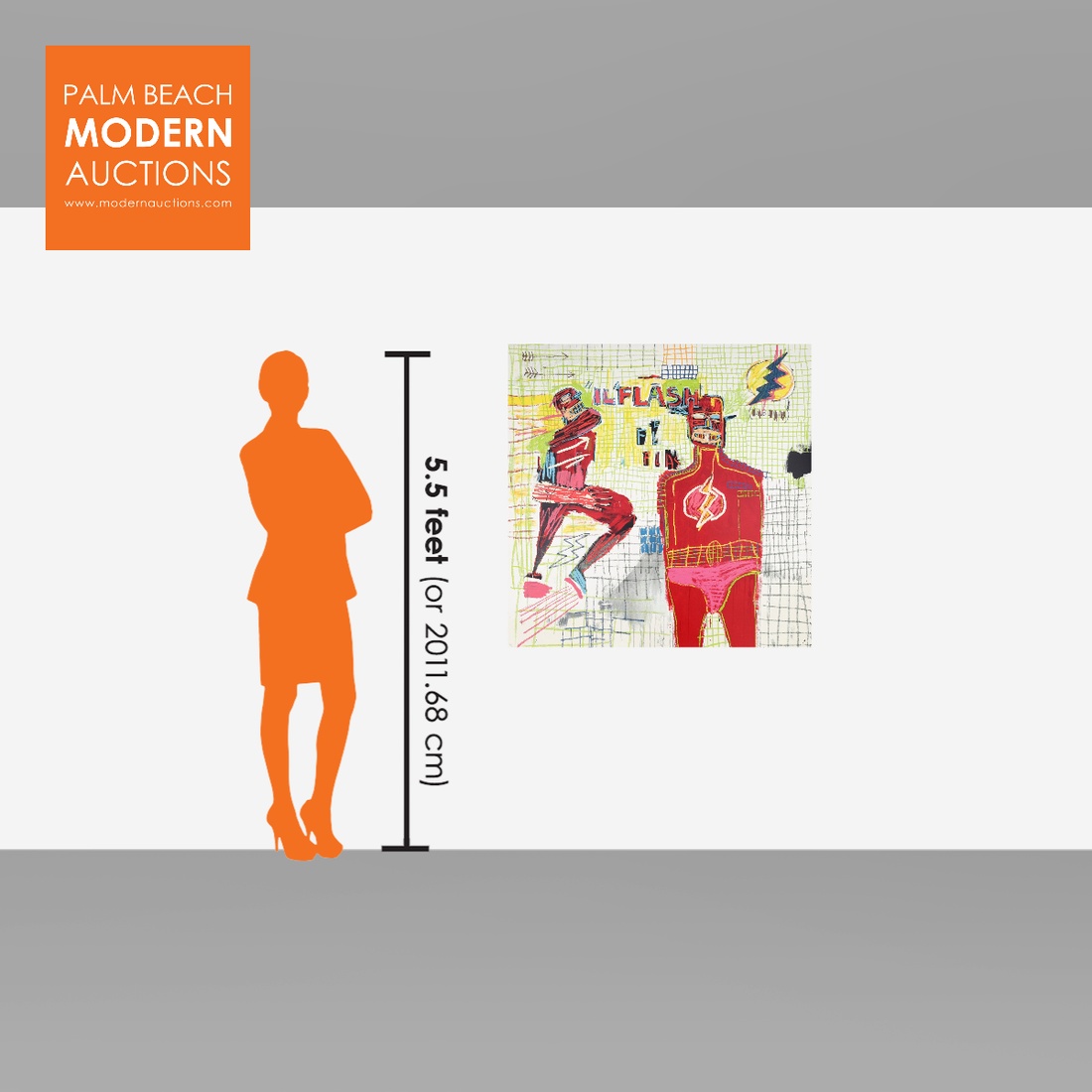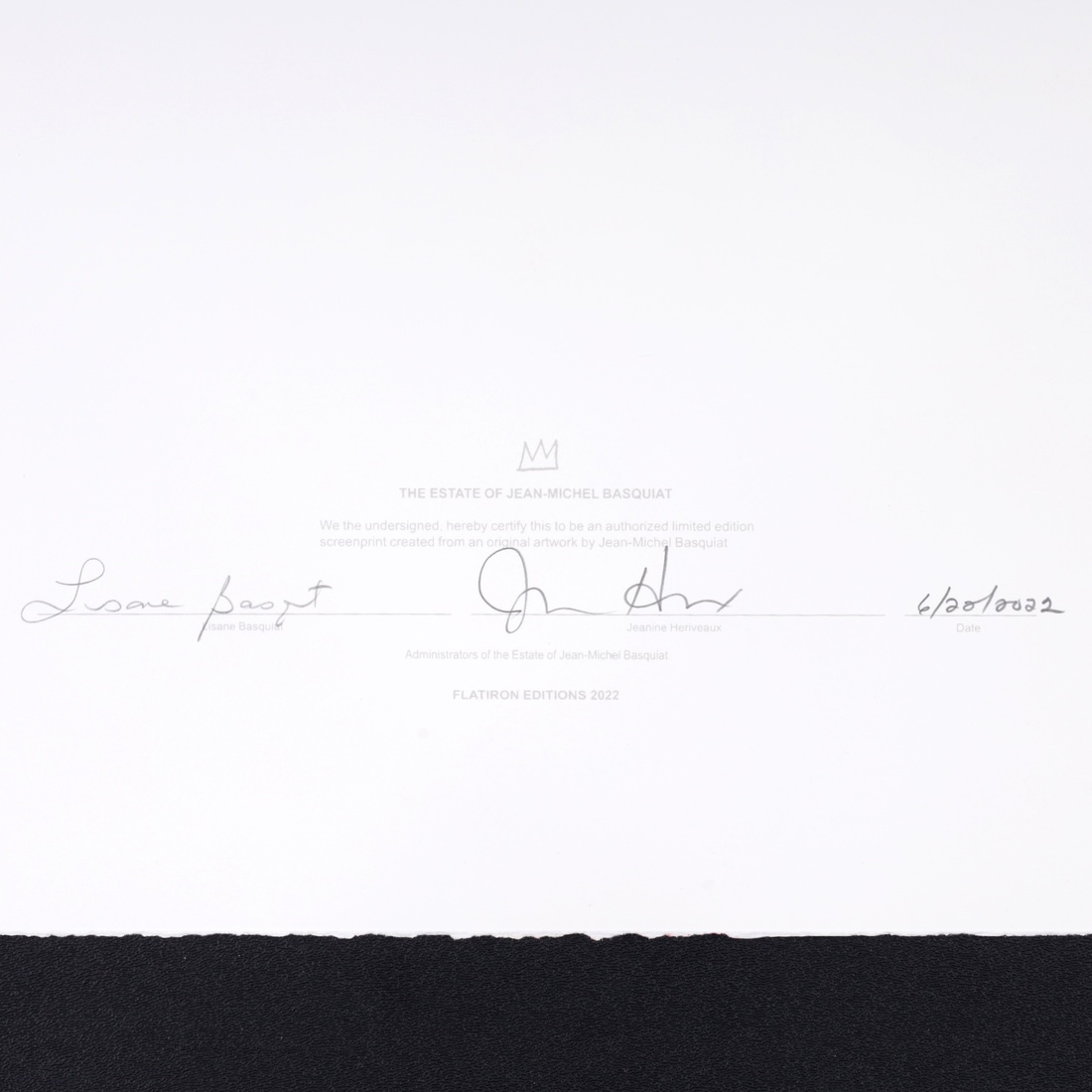 | Additional Information | The screenprint, from the "Superhero" portfolio, was printed by Brand X Editions, Long Island City, New York, and published by Flatiron Editions, New York, New York. Provenance: Michael Glassner, New York | Private Collection, Philadelphia, Pennsylvania. The work was released by Pace Prints, New York, New York. It is based on original artwork created by Basquiat between 1982 and 1987 and is signed on the estate stamp verso by Lisane Basquiat and Jeanine Heriveaux, Administrators of the Estate of Jean-Michel Basquiat. |