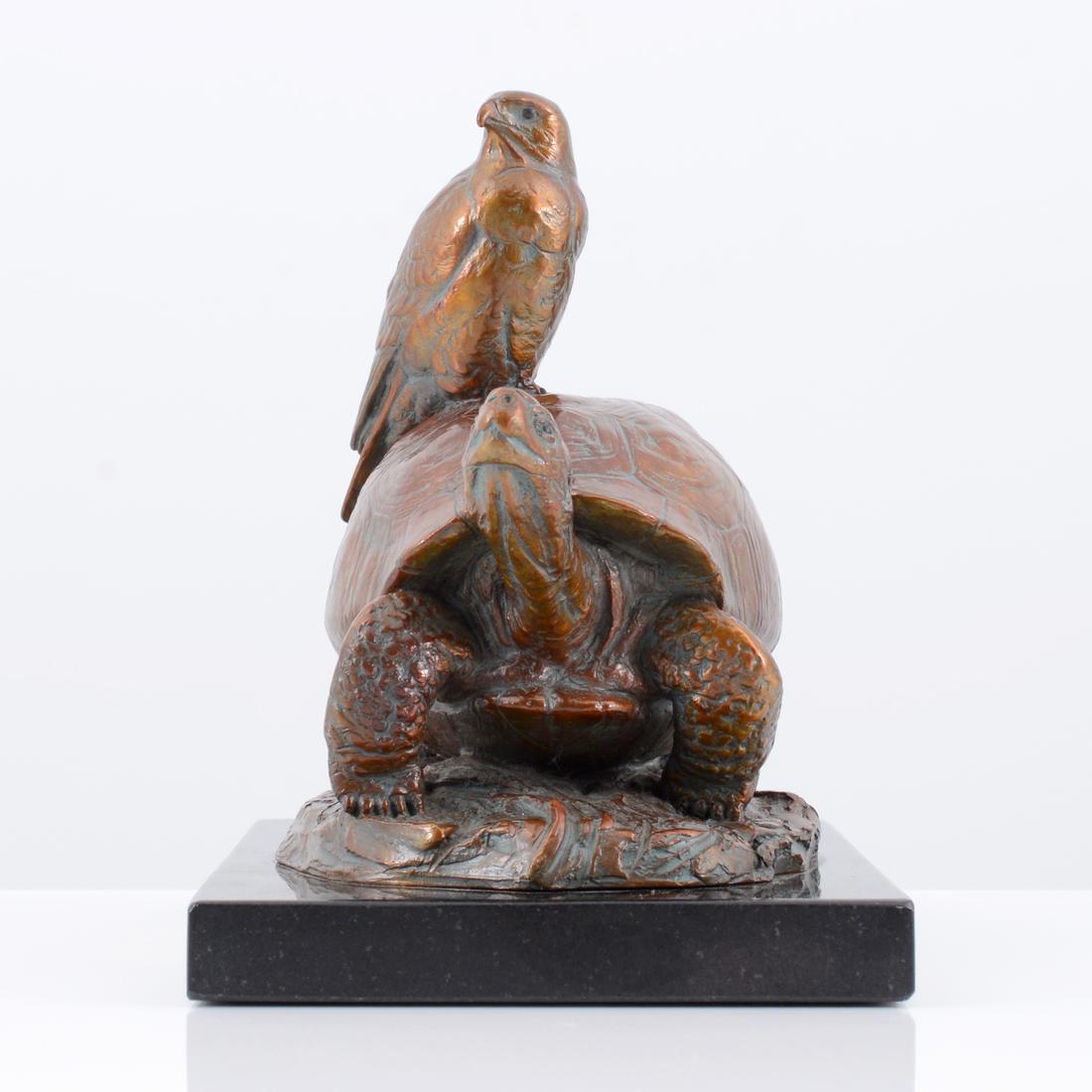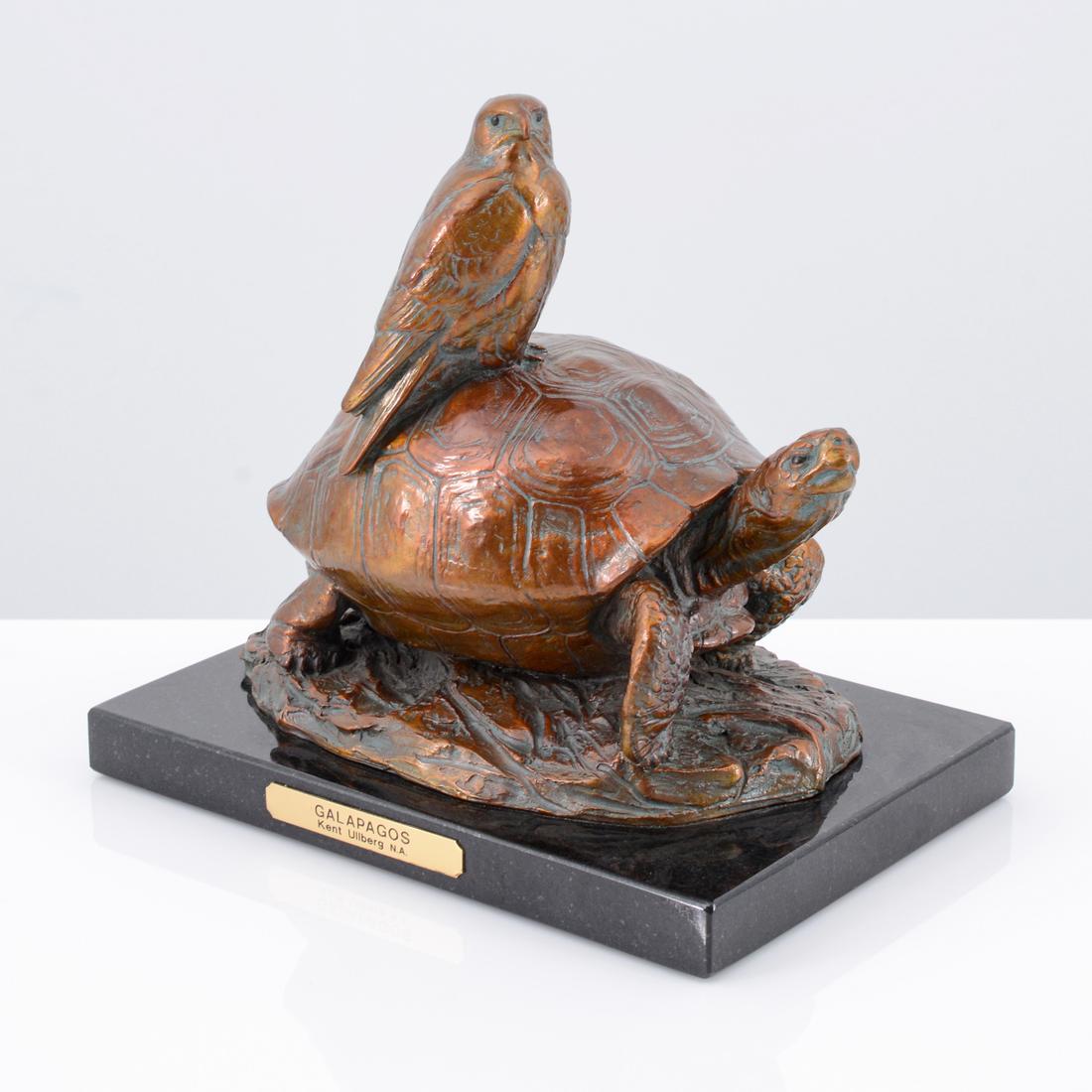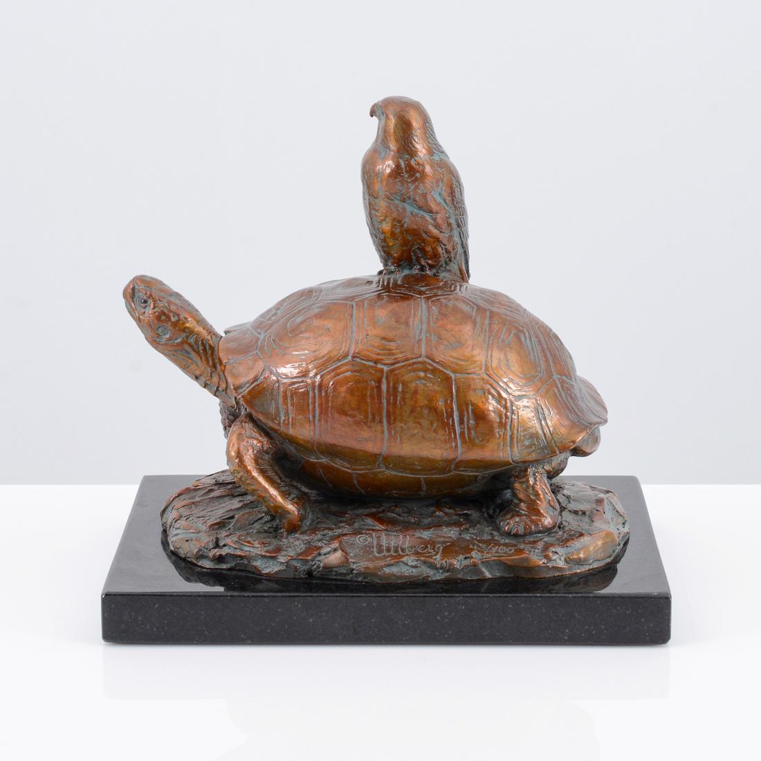 Kent Ullberg Bronze Sculpture, Tortoise & Hawk