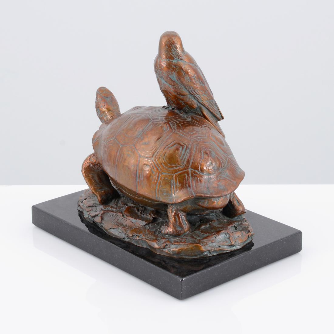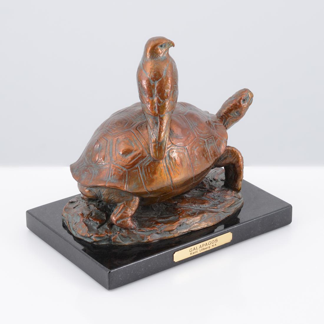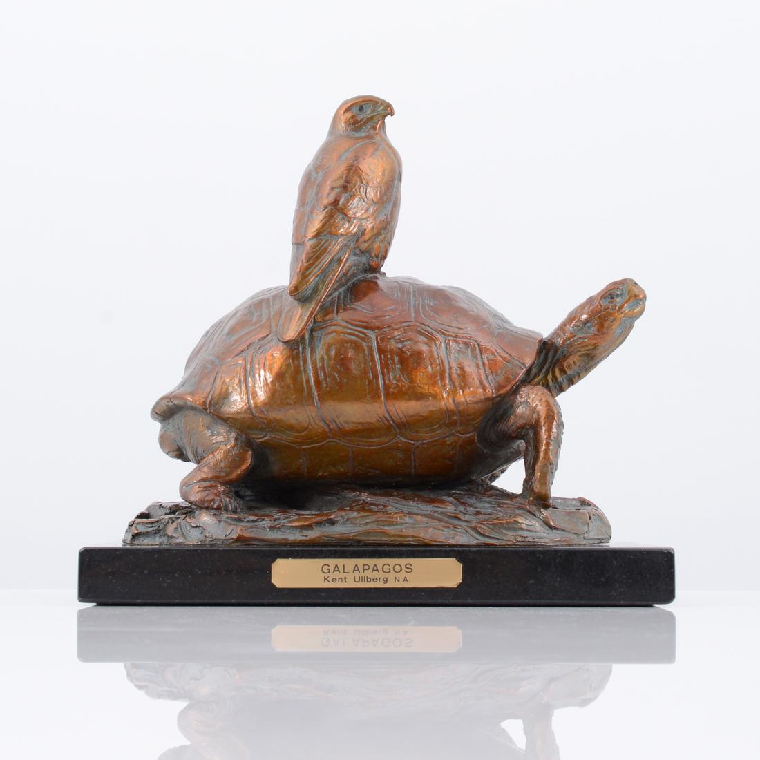 Kent Ullberg Bronze Sculpture, Tortoise & Hawk
