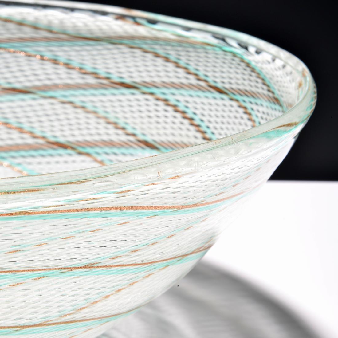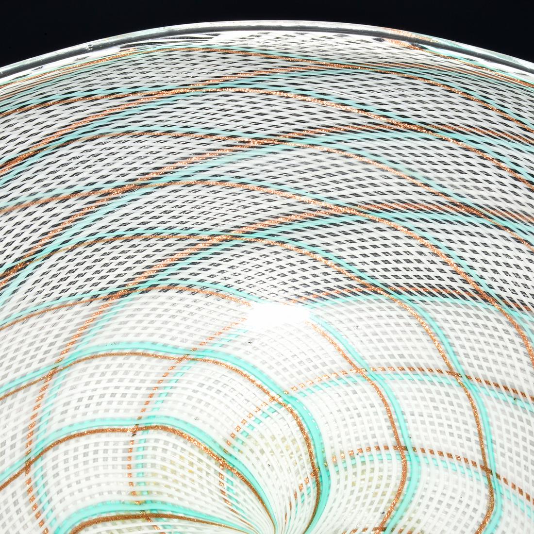 Large Dino Martens Reticello Footed Center Bowl, Murano