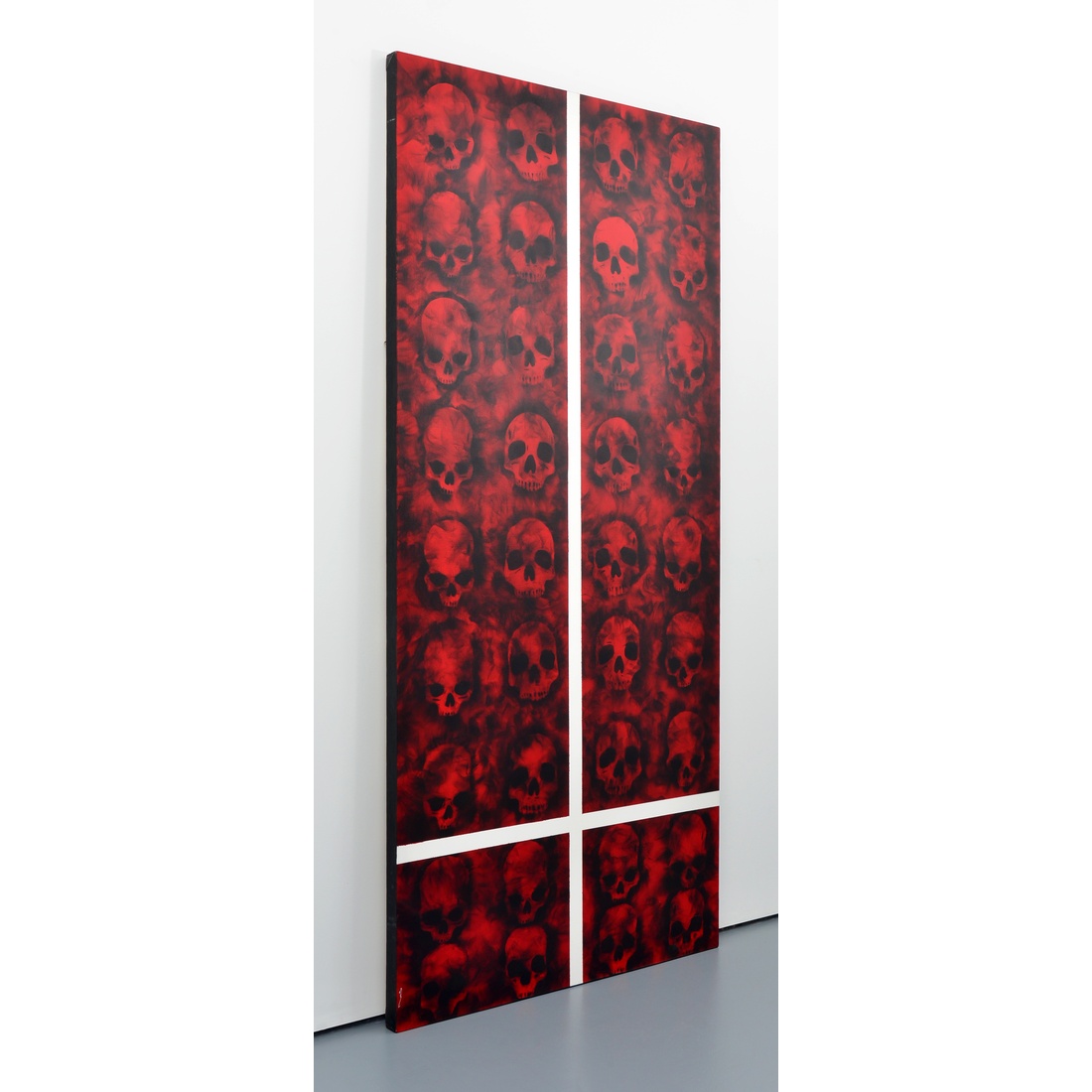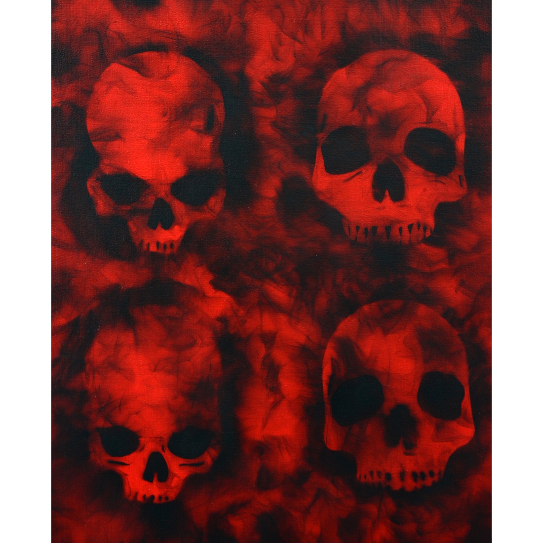 Large Sabino Guiso Smoke Painting, Skulls, 102″H