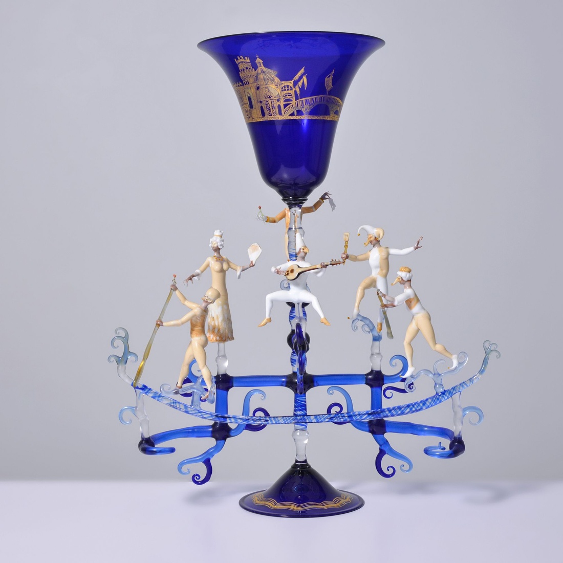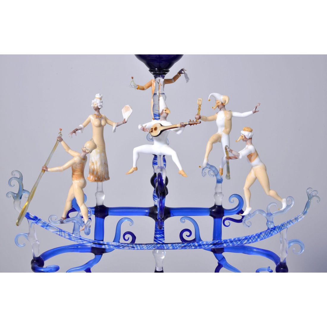 The sculptures have an elaborate Carnival of Venice motif.