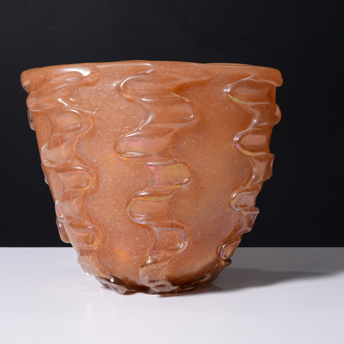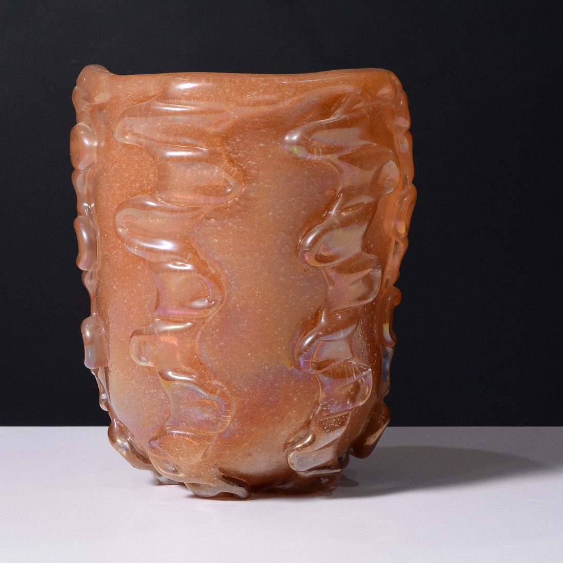 The vase is bollicine glass with raised decoration. Provenance: Private Collection, Ithaca, New York.
