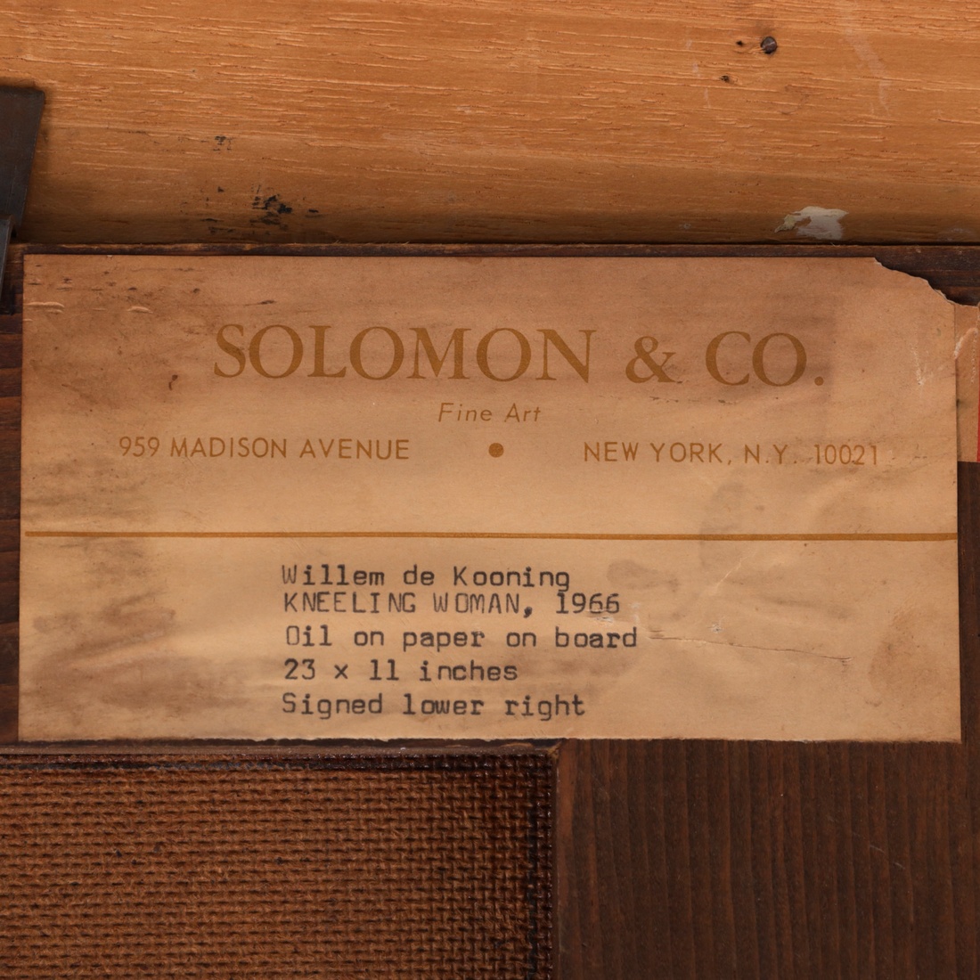 The lot includes a copy of the Nassau County Museum of Art's exhibition catalog, The Abstract Expressionists and Their Precursors. Gallery labels verso: Solomon & Co., New York, New York | Nassau County Museum of Art, Roslyn, New York. Provenance: Harold Diamond, New York | Private Collection, Baltimore | Solomon & Co. Fine Art, New York | Robert Peyser, New York | Sotheby's, 3.1.2019, Lot 28 | Private Collection, New York. Exhibition: The Abstract Expressionists and Their Precursors, January-March 1981, Nassau County Museum of Art, Roslyn, New York. Reference: The Abstract Expressionists and Their Precursors, Nassau County Museum of Art, Exhibition Catalog, 1981, cat. no. 21.