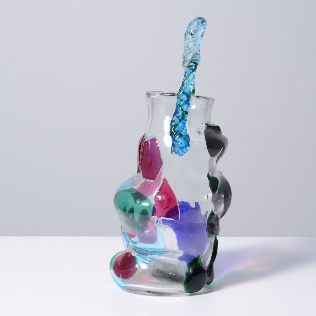 Additional Information: The vase is listed on the private collector’s running account statement from Themes & Variations Gallery. Provenance: Themes & Variations, London, England | Private Collection, Ithaca, New York. “This piece was acquired during several trips to London in the 1980s. Over the years, the buyers befriended the owners of Themes & Variations Gallery, falling in love with the quirky, contrarian style that is characteristic of Fulvio Bianconi.”